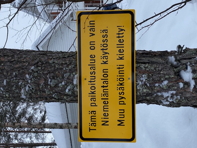 Niemeläntalon paikoitusalue on heti Pappilantieltä käännyttäessä liittymän oikealla puolella. Se on merkitty kyltillä.